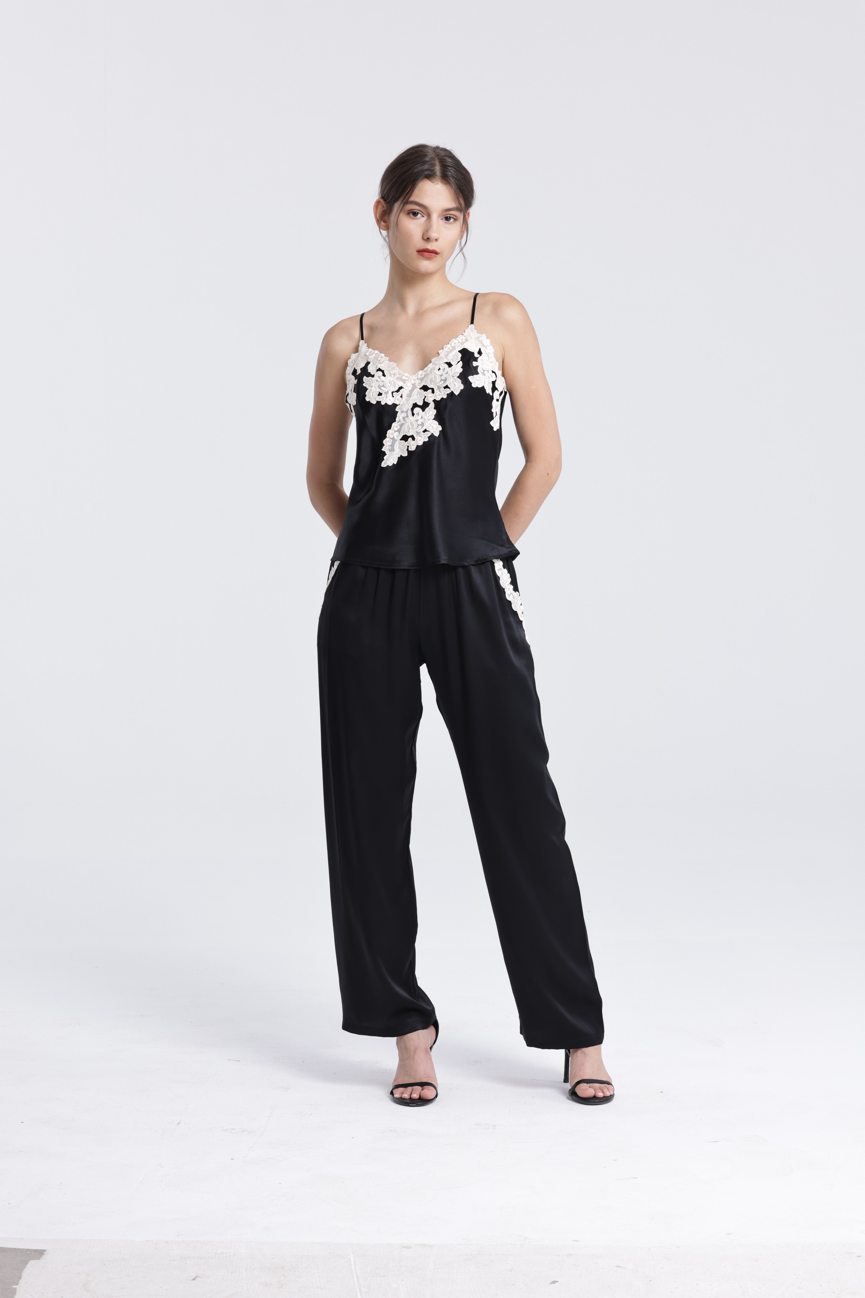 Luxury Hand-Embroidered Black Silk Ensemble Elegant Silk Sherwani Set with Intricate Embroidery Homewear Womens Pajamas Set_Homewear_Product Catalogue_Jiangxi Meishuo Industrial Co., Ltd.